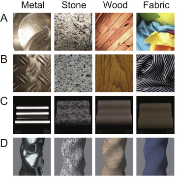 Some material properties, such as microscale roughness, hardness, coldness, and weight, are nonvisual and cannot be directly sensed visually. Nevertheless, interestingly, humans can accurately estimate such nonvisual properties from the visual appearance of materials, in a way that correlates with those haptically estimated through touching them. It is thought that recognition of such non-visual properties is based on the association between certain visual features and nonvisual properties learned through experience (see the “Crossmodal association through experience” section below). This implies that processing non-visual properties involves neural mechanisms different from those involved in processing visual properties, such as access to stored knowledge of learned associations. Consistent with this view, by analyzing the temporal characteristics of visual discrimination of material categories, studies suggested that it takes longer to process non-visual material properties than visual ones.